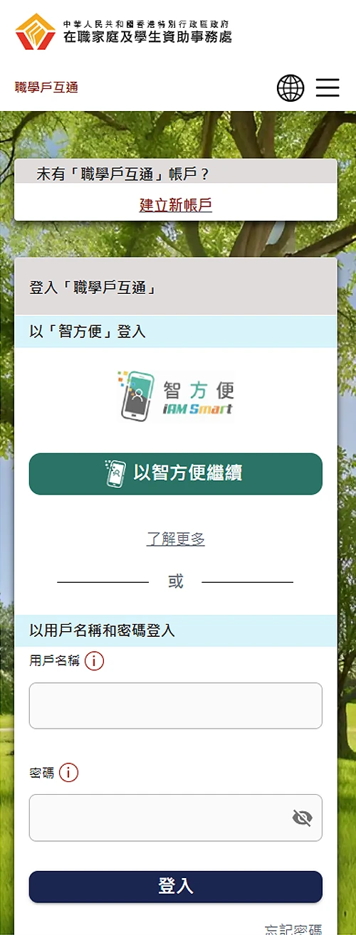 步驟(一):請在「職學戶互通」的首頁按「建立新帳戶」。